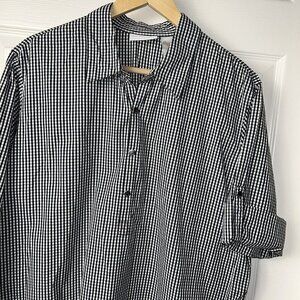 Liz Claiborne Lizsport Black Check Print Snap Button Rolled Sleeved Shirt Sz XL