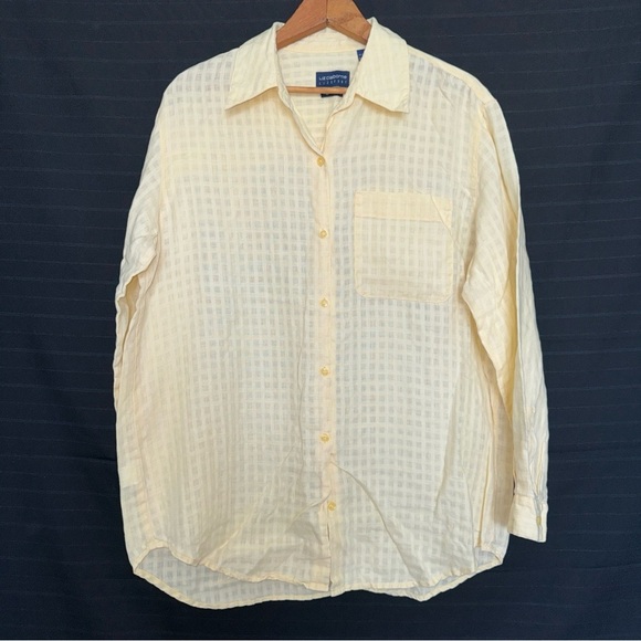 Liz Claiborne Lizsport Womens M 100% Irish Linen Button-Up Shirt Creamy Yellow