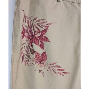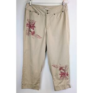 Liz Claiborne Lizwear Jeans Audra Cropped Khaki Pants Size 12 Pink Floral Accent