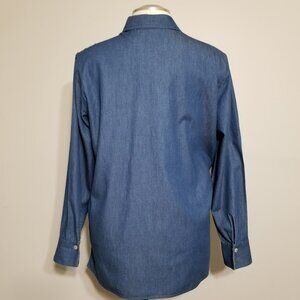 Liz Claiborne Lizwear Jeans Blue Denim Chambray Tuxedo Pleat Blouse Shirt Top XL