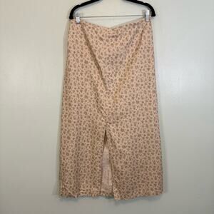 Liz Claiborne Lizwear Maxi Skirt 10 Floral Linen Blend Slit Drawstring Tan NWT