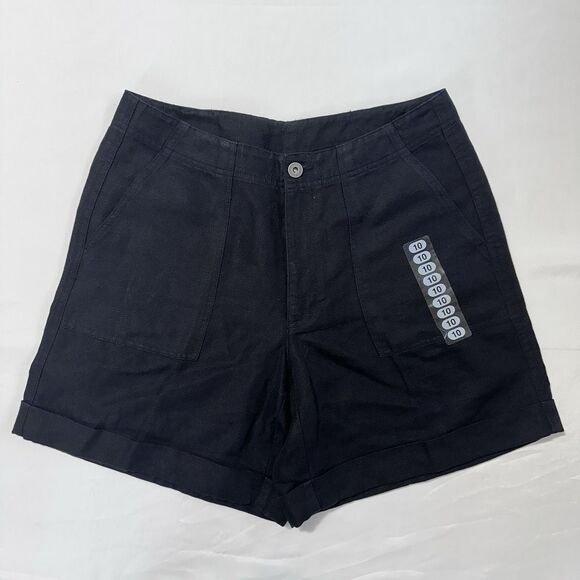 Liz Claiborne Lizwear Shorts Women Linen Blend High Rise Sz 8-10 Black - NEW