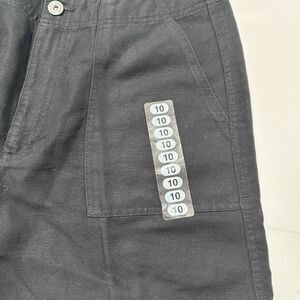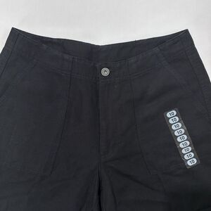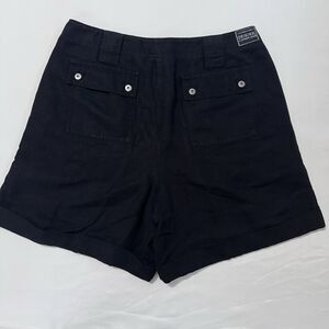 Crafted with a blend of cotton and linen, these Liz Claiborne Lizwear chino shorts are a versatile addition to your wardrobe. Designed for both comfort and style, the high-rise shorts come in a classic black hue that pairs effortlessly with any top. Size 10 with a waist measurement of 30 inches, they feature a flat front and a 6.5-inch inseam that hits at a flattering mid-thigh. They run small and have no stretch so these are more like size 8 for a comfortable fit.