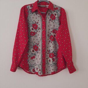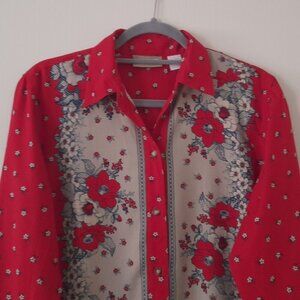 This listing is for Liz Claiborne Lizwear Size S Long Sleeve Red Floral Striped Women's Shirt