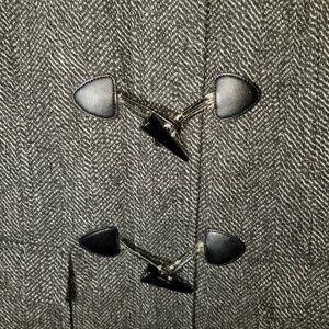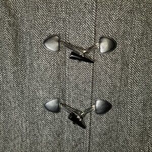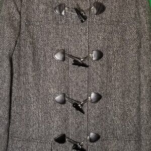 Up for sale is - Liz Claiborne Long Herringbone Hooded Trench Coat Gray Women Size MT Wool