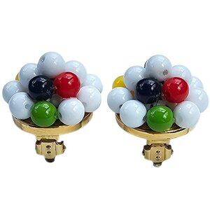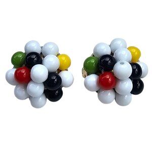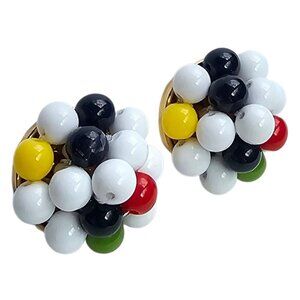 Liz Claiborne Lucite Bead Cluster Clip On Earrings Multicolor Round Dome Signed, J165