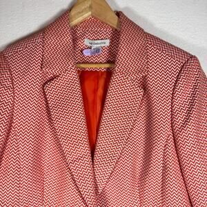 Liz Claiborne Mandarin Red & White Chevron Blazer Jacket Preppy Academia Large
