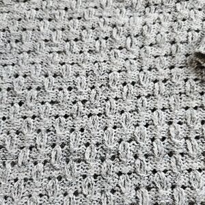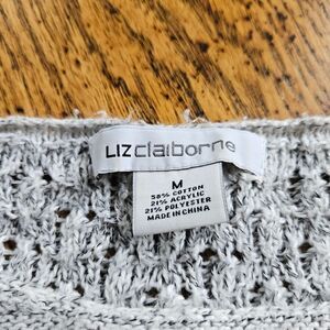 Description: This medium-sized Liz Claiborne sweater features a grey textured knit, offering a lightweight and comfortable fit.