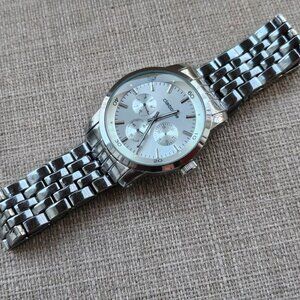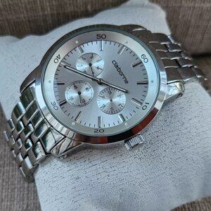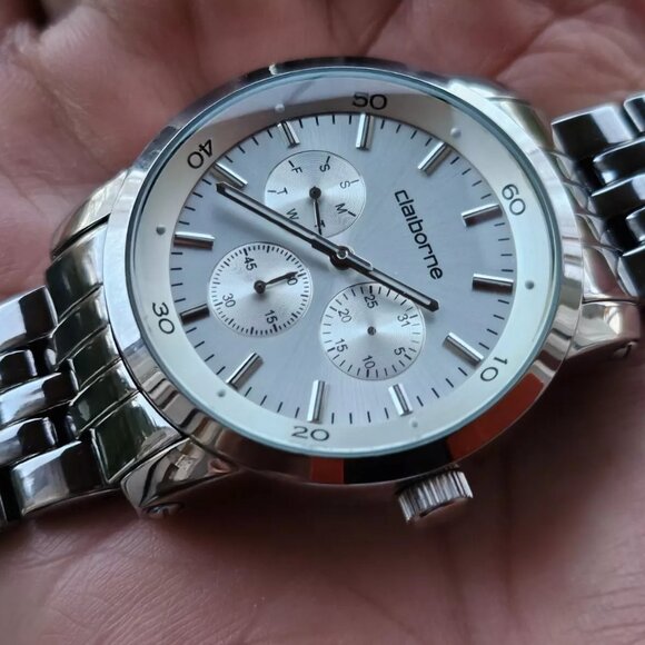 Liz Claiborne Men Wristwatch Silver Tone Multi Functional Analog Watch Read desc
