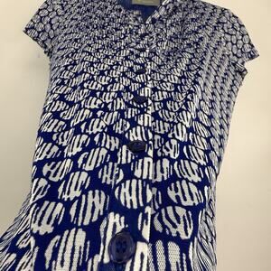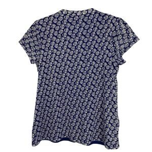 Liz Claiborne Mesh Overlay Top size Small Blue Circle Pattern Short Sleeves