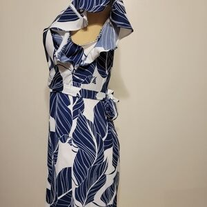 Liz Claiborne Midi Dress Size 6 Ruffle Sleeves Floral Classic Demure Cruise Vaca