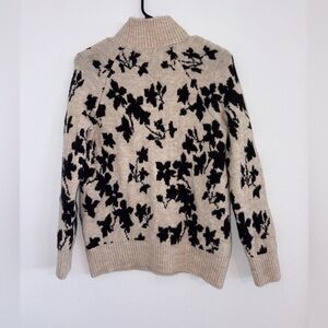 Liz Claiborne Mock Neck Beige Black Floral Sweater