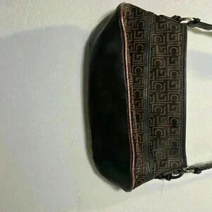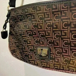 Liz Claiborne Monogram Crossbody Shoulder Bag Dark Brown Gold Adjustable Straps