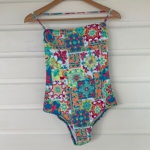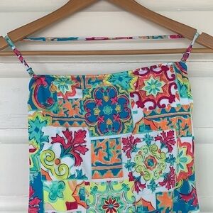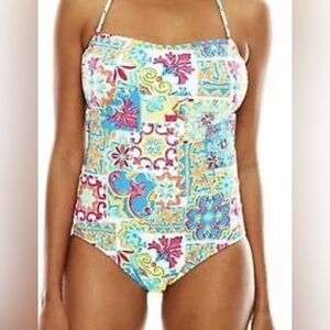 Liz Claiborne | Multi Graphic Print Halter Top One Piece Bathing Suit NWT back additional strap to wear strapless, in size 8.