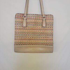Liz Claiborne Multicolor Tweed/ Faux Pebbled Leather Handbag Purse Linen Blend