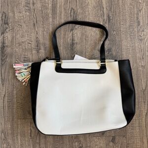 Chic and versatile handbag in classic black and white with a cute tassel detail. Perfect for any occasion. New with tags. Large sized bag.