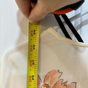Measuring flat and in inches: 29" pit to pit and 29" shoulder to hem.