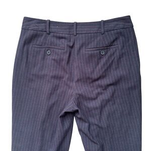 The Liz Claiborne Navy Blue with Red Pin Stripes Pant Suit Set is a stylish and sophisticated business attire for women in size 6. This classic striped pant suit set features a navy blue color with red pin stripes, making it a versatile and fashionable option for professional settings. The pant suit set includes a matching jacket and pants, offering a coordinated and put-together look that exudes confidence and professionalism. Perfect for the modern businesswoman looking for a timeless and well-crafted wardrobe staple. Has small loops on the sides for a belt if you want to wear one, small enough wear it can be worn without one, does not come with a belt.
