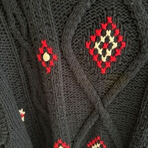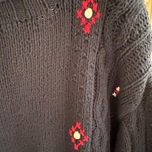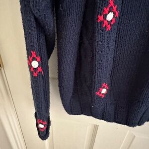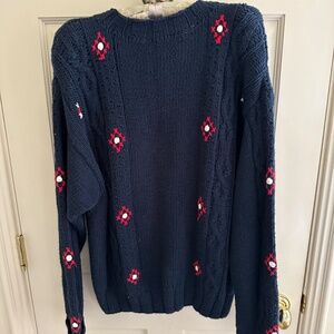 Liz Claiborne Navy Cotton Sweater with hand embellished embroidery