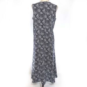 Liz Claiborne Navy Leaf Print Midi Dress Medium Stretch V-Neck