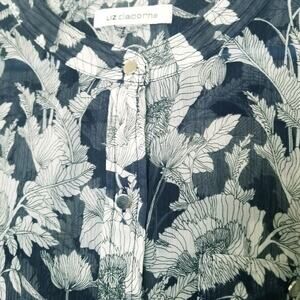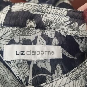 Liz Claiborne Navy White Floral Sheer Button Up Long Slv Size See Measurement's