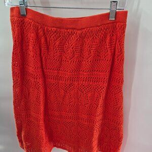 Liz Claiborne New York Orange Crochet Midi Skirt Medium