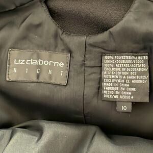 Liz Claiborne Night Classic Romantic Low Back MIDI High Waist Side Zip Black Dress 10. This is a gorgeous classic black dress with short sleeves and an embellished high empire waist with two rows of three dimensional “flowers” that cross cross in the back over an open drop backless sexy romantic styling. The dress is lined and has a side zipper for ease of dressing. Perfect for any evening or semi formal formal cocktail wedding date night occasion. Please see photos for details condition and measurements.