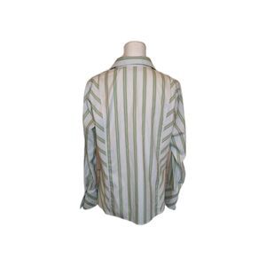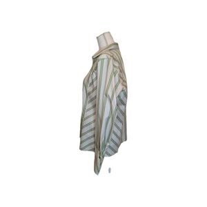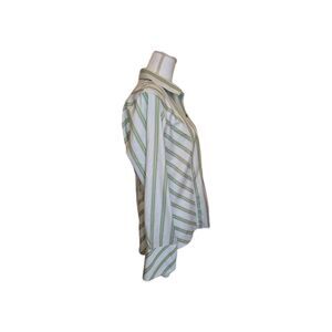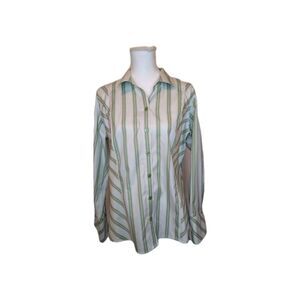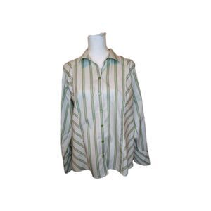 Liz Claiborne Non Iron Striped Women's Shirt Button Blouse Green Size 12 Career