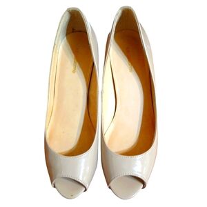 Liz Claiborne Nude Patent Leather Heels Open Toe Pumps Size 8 M