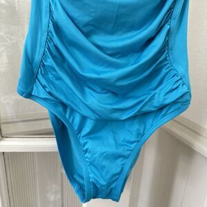 Liz Claiborne One Piece Swimsuit Womens Size 10 Aqua Blue Halter Strap Ruched