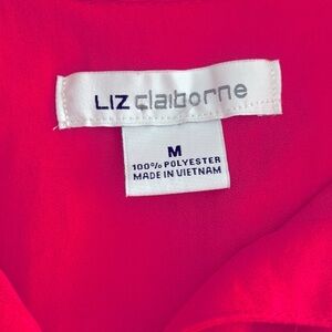 Liz Claiborne PINK Collared Button Sleeveless Slight High/Low Top. Size Medium. This is a 100% polyester, lightweight top. The color is truly a pop of pink. In some of the photos it shows up more coral. The photo with the close up button is most true to color. Perfect for the summer when you want a punch of color. Excellent Condition