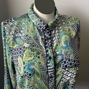 Liz Claiborne Paisley & Polkadot Button Up Blouse Top Plus Size 1X