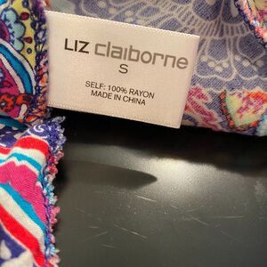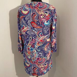 Liz Claiborne Paisley V-Neck Boho Multi Color Womens Top/Tunic Size S