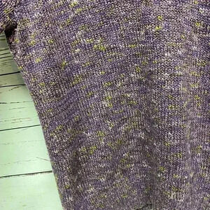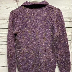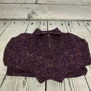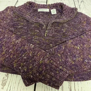1/4 zip collar sweater purple knit by Liz Claiborne. Petite size PXL. Long sleeve with multi colored threading throughout. Pullover style.