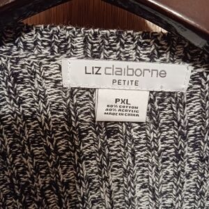 Liz Claiborne Petite Black & White Draped Sweater Cardigan Open P XL Knit
