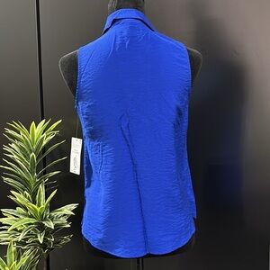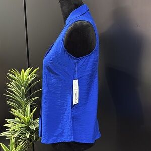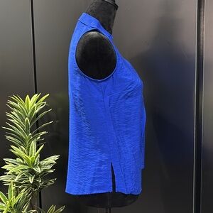 Liz Claiborne Petite Collar V-neck,slit at hips, sleeveless,loose fit,satin feel