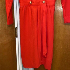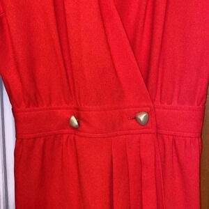 Double -Breasted, V-neck, ❤️💯😍Lady in Red Killer Wrap Dress, Astounding either for Professional, Church ⛪️ , or Formal Purposes, 2 Golden buttons w/a red inside button & snap 🫰 button, pleated, slits, elastic back waist band, plus shoulder pads.