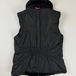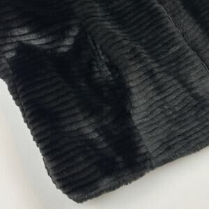 Liz Claiborne Petite M Black Ribbed Faux Fur Full Zip Reversible Vest Pockets
