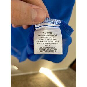 This Liz Claiborne Petite blouse features a vibrant blue color with delicate ruffle layers on the front. It is made of lightweight polyester for comfort and durability. The short sleeves and back keyhole closure add a stylish touch, making it suitable for casual and semi-formal wear.