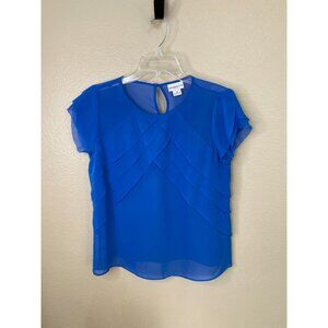 Liz Claiborne Petite Womens Blue Layered Ruffle Short Sleeve Blouse PM Polyester