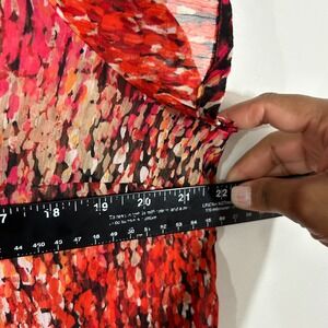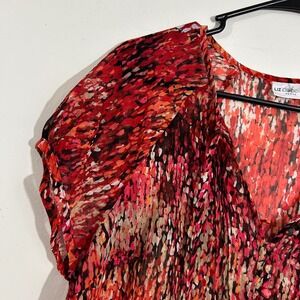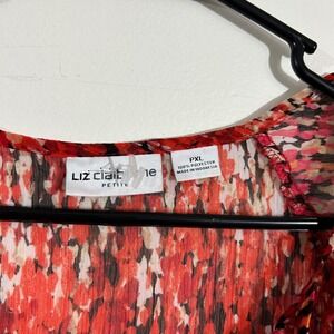 Liz Claiborne Petite Womens PXL Blouse Red Sheer Pleated V Neck Top