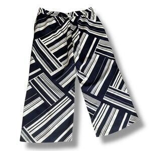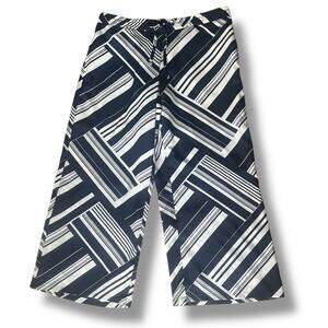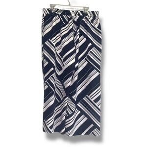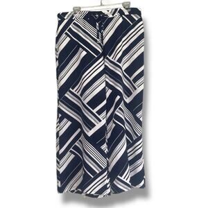 Liz Claiborne Petite wide leg pants in a navy and white geometrical design giving a nautical look.