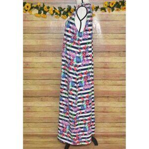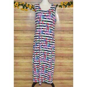 Liz Claiborne Petites LP Striped Floral Sleeveless Maxi Shift Dress Summer Casua