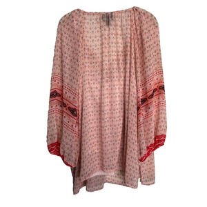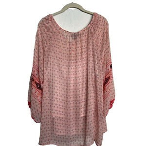 Liz Claiborne Pink Blouse Womens 3X 2 Piece Boho Peasant Long Sleeve Semi Sheer