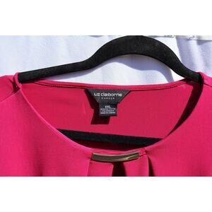 Liz Claiborne Pink Long Sleeve Blouse with Pleated Detail, Size XXL