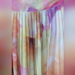 Liz Claiborne Pink & Orange Watercolor Chiffon Midi Skirt Coquette Size 8 Fairy