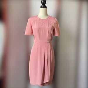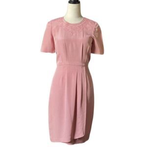 Liz Claiborne Pink Short Sleeved Dress w/ Embroidered Top (Size: 2 Petite)