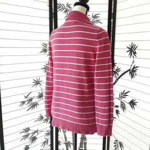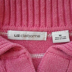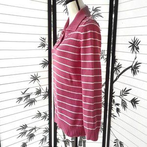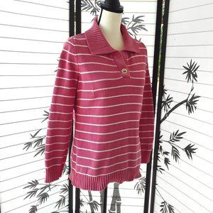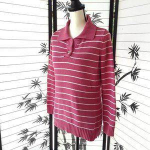 Liz Claiborne Pink White Striped Ribbed Knit Collared Sweater Size M