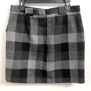 Liz Claiborne Plaid Mini Skirt Size 8 Black Gray Front Patch Pockets Lined Short