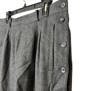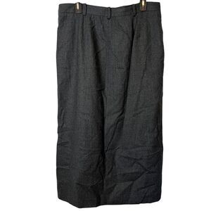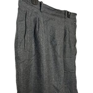 This Liz Claiborne vintage skirt is a classic yet stylish piece featuring a solid gray color and a modest midi length. Made from wool, it has a pleated design with a touch of old-money elegance. The skirt is adorned with button accents and has convenient pockets for added functionality. Perfect for various occasions such as parties, casual outings, or business settings, this size 16 garment is a timeless addition to any wardrobe, especially during the winter, fall, or spring seasons.